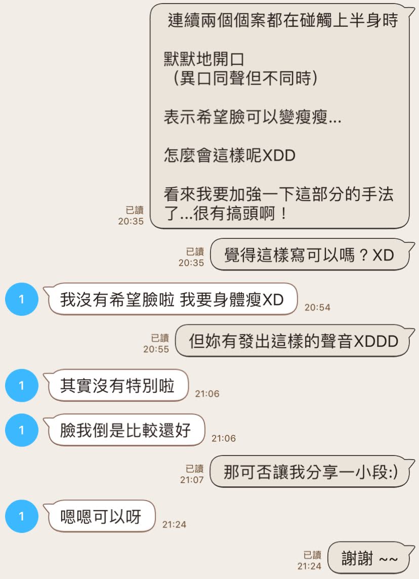 第一次體驗,我非常的驚奇,也非常的意外自己的身體會有這麼大的激動,一開始有點放不開自己,但到中期就慢慢的去接受…