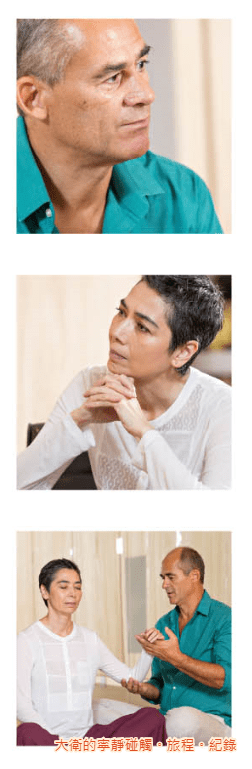 賴佩霞:在台灣,普遍的按摩手法多是屬於用力的,所謂痛則不通,通則不痛,越痛越通。但我知道,具有靜心品質的身體工作者,使用的方式完全不同。我想瞭解,為何你做的工作這麼奇妙,只要輕碰觸身體,就可以這麼深入觸及人心?