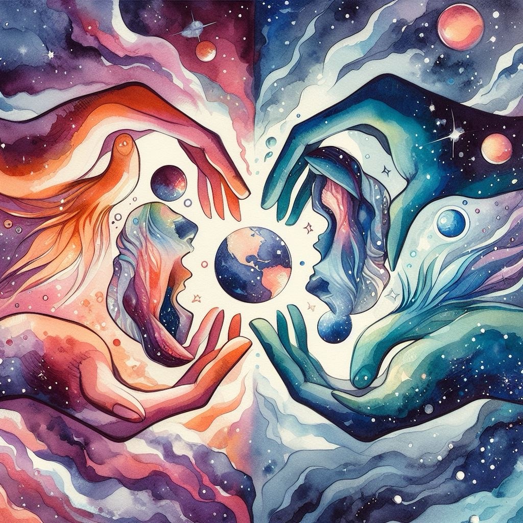 關係就像是一面放大鏡,它可以讓我們更清楚地看見自己的不同面向,包括我們的優點和缺點,我們的喜好和厭惡,我們的信任和恐懼,我們的自由和責任,等等。這些面向都是我們的一部分,我們不能否認或忽視它們,而是要認識和接納它們,並且用愛和智慧來調整和平衡它們。